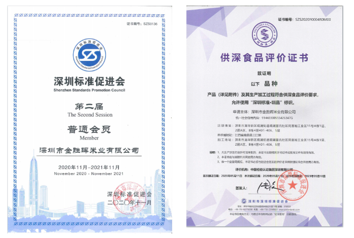 深圳市金胜晖米业有限公司(以下简称“金胜晖”)于2019年11月加入深圳标准促进会,成为协会的一员。2020年5月,公司旗下产品——添多碗油粘米通过评价成为了“圳品”。